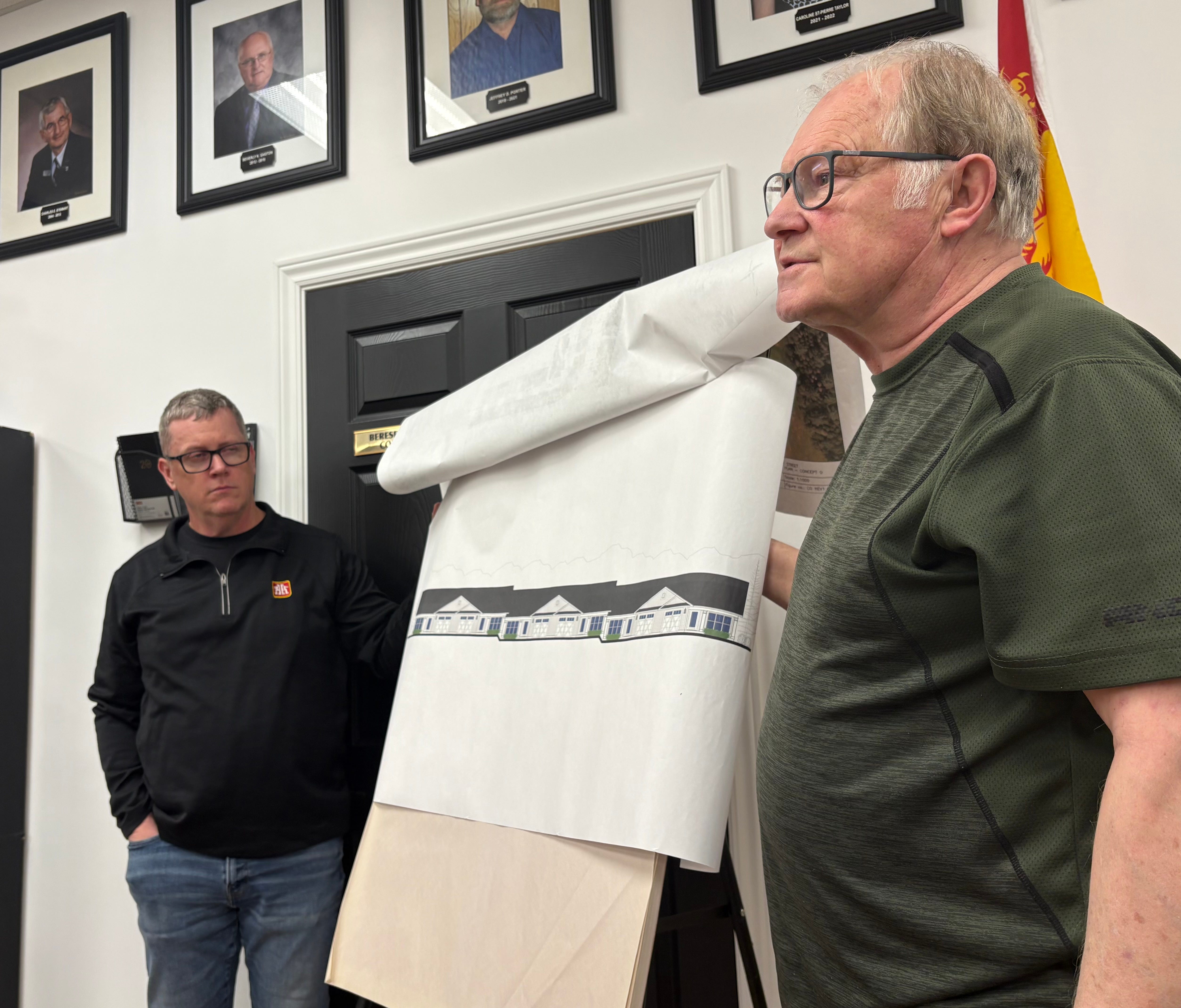 At the Jan. 21 council meeting, local businessmen Brad Dillon and Cliff Durling presented plans for an 18-unit rowhouse complex on Prospect Street, between the Doaktown Curling Club and the Ambulance New Brunswick station. They’re asking the village to give or sell them the property.